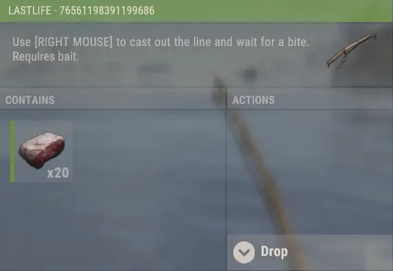 How to fish in Rust using a fishing rod, using bait like worms or grubs, and proper cast timing.