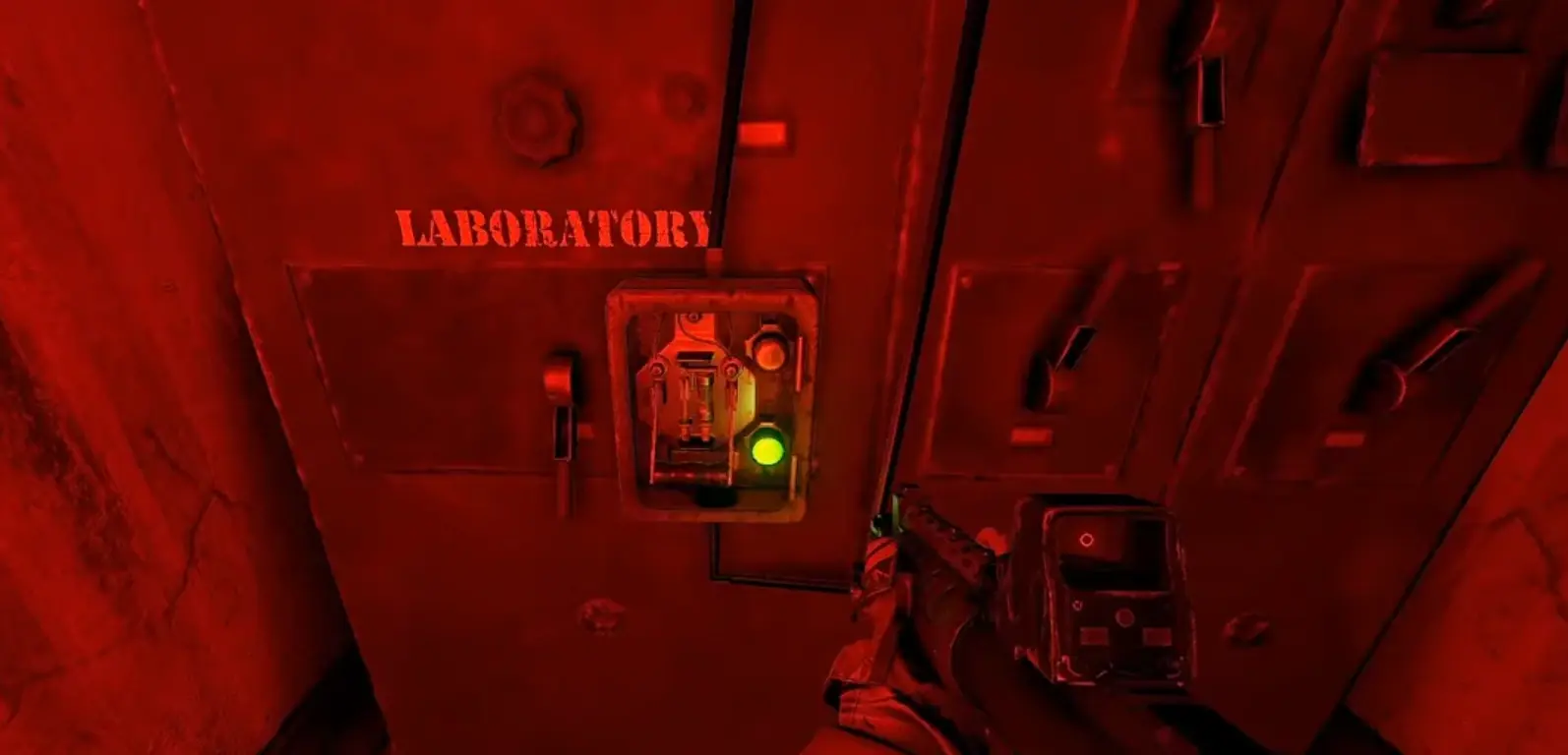 At the bottom level is a locked door inside the complex that can only be opened from within the tunnels. A red button beside the door opens it for about five seconds, creating a quick escape point if things go wrong.
