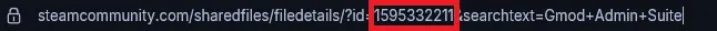 When working with addons and collections, you will find yourself needing a workshop ID at some point or another. To gather an ID from a workshop page, you’ll have to look at the page’s URL. Inside the URL, you’ll find a string of numbers that looks something like: id=1234567890. That is the ID for the addon or collection you’re looking at.