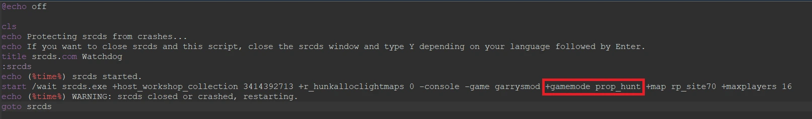 If you aren’t using a server panel, you can change your server’s gamemode using your server’s .bat file. Open your batch file and find the +gamemode value. Assuming you haven’t changed it before, it should say sandbox immediately after it. Change this value to your gamemode ID and save the file. Now when you load up your server, it’ll be running the new gamemode when you join!