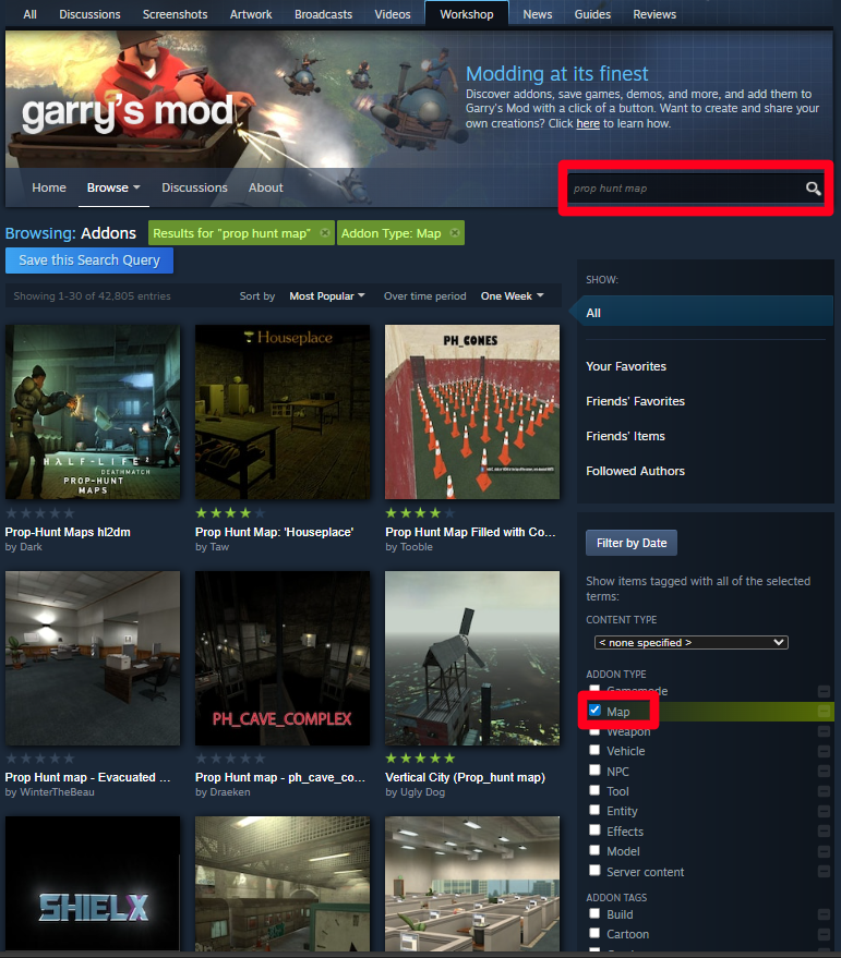 To find and download Prop Hunt maps for your Garry’s Mod server: