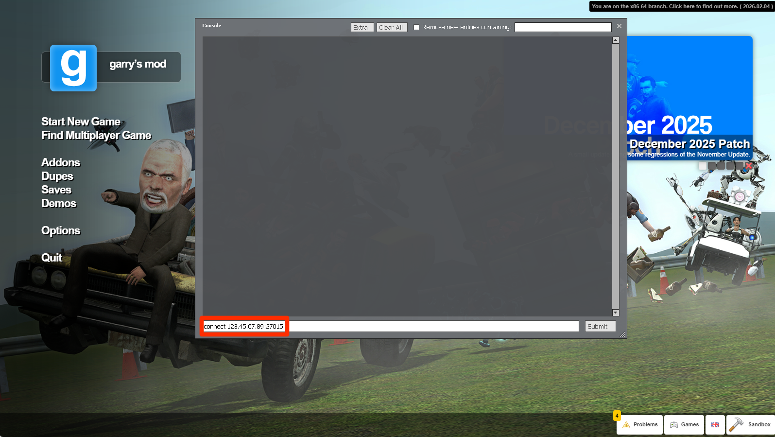 - Open Garry’s Mod from the Steam client.