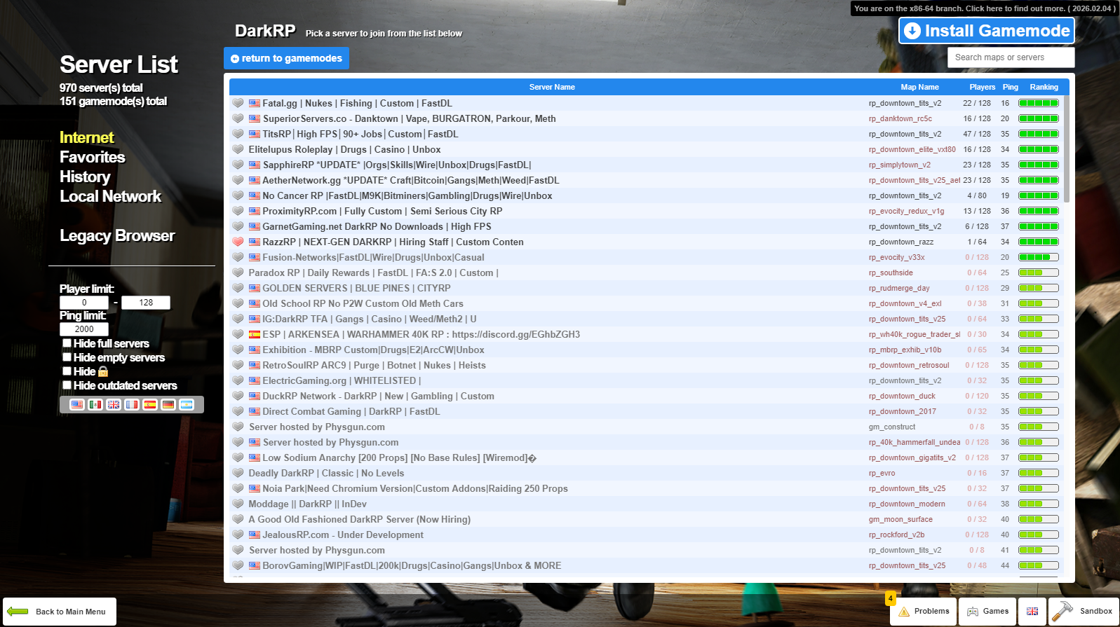 - Choose the game mode you would like to play such as DarkRP, Prop Hunt, or TTT.