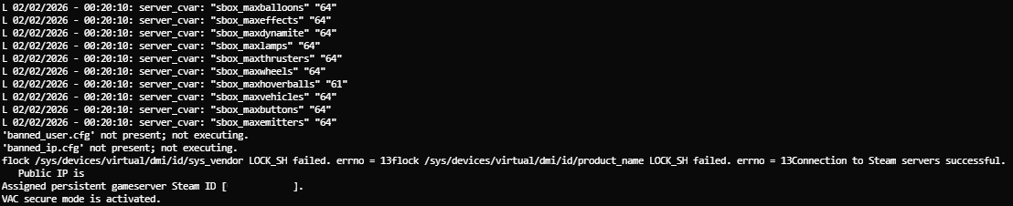 Once your GMod server is fully started, you can then join in game, either via the console, or the in-game server browser! You will know the server is fully started when you see “Connection to Steam servers successful.” and “Vac secure mode is activated”.