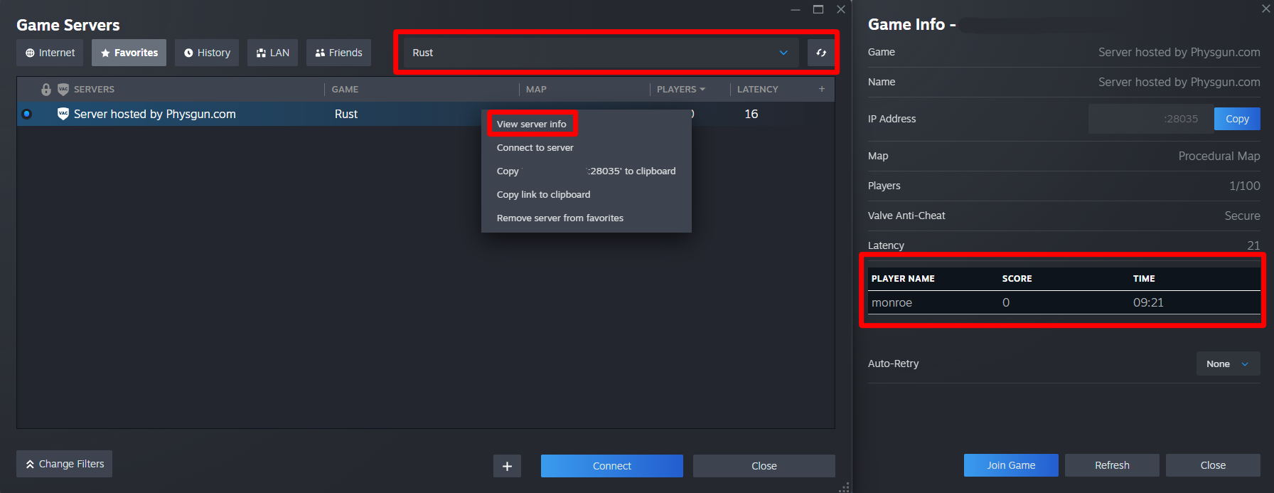 Note: The Steam Server Browser may fail to display a complete player list on high-population servers. Players who have set their privacy settings to display themselves as offline may also not show up in this list.