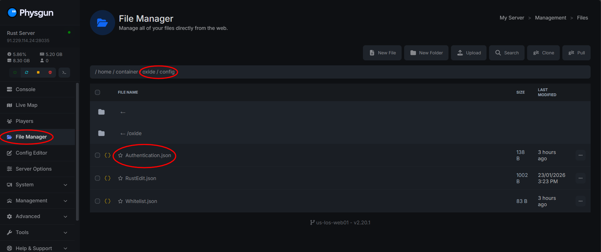 Navigate to /oxide/config/ in the File Manager where your server’s files are.