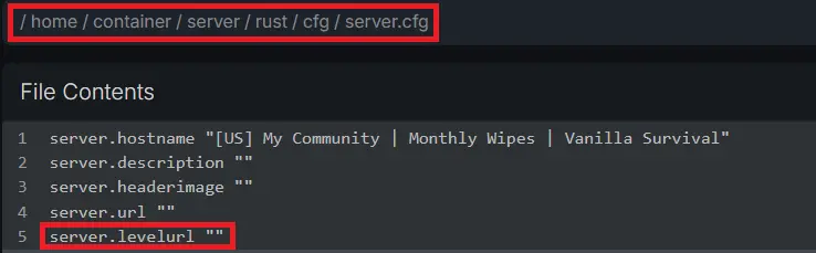 Once you have your link, you can paste it in the Custom Map URL option on your server panel or server.levelurl in your server.cfg file located in the server/rust/cfg directory. Once you’ve done this, restart your server. You can find more details on uploading a custom Rust map to your server in our Help Center.