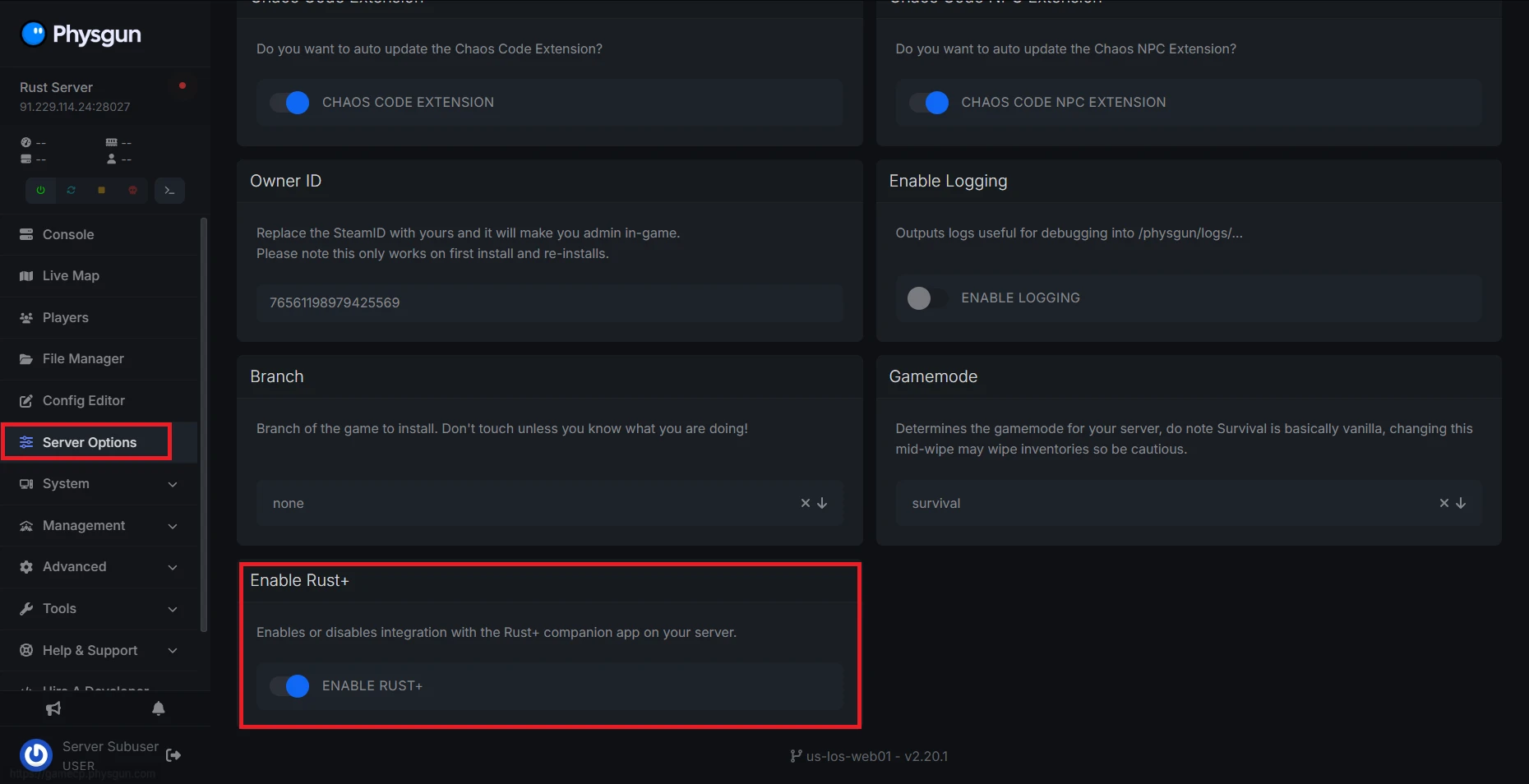 To enable Rust+ on your Physgun Rust server: