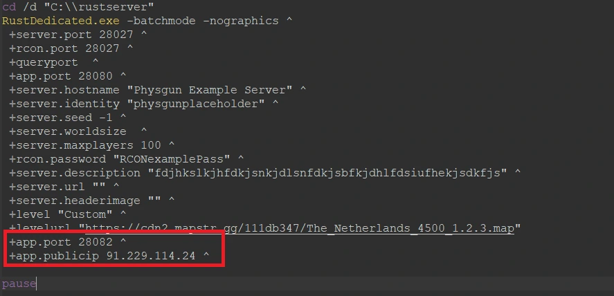 In the same file, add +app.publicip ^, followed by your server’s IP address.