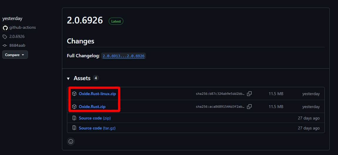 Download the latest Oxide.Rust.Zip file for your operating system your server is on.