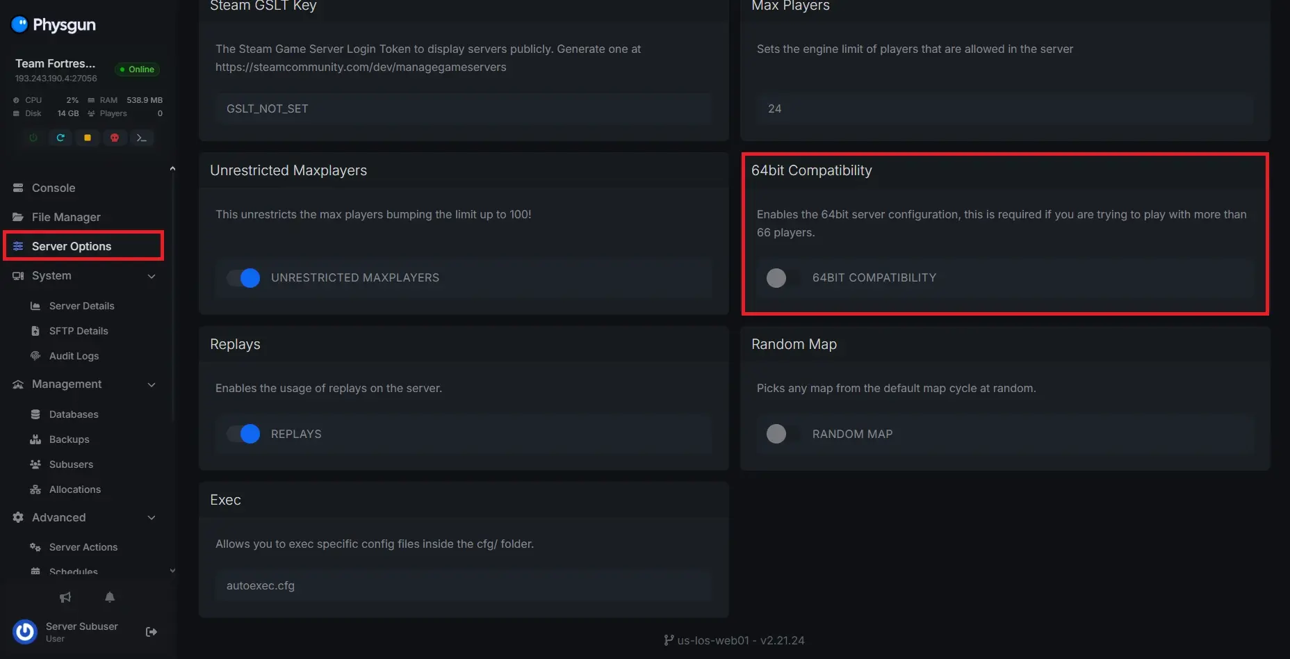 Open your Physgun server panel.