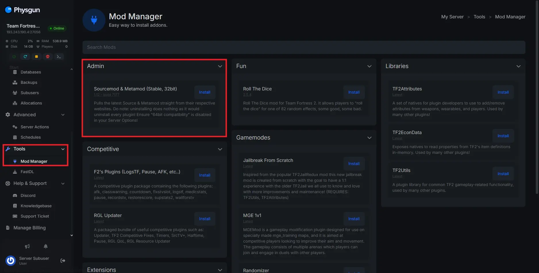 How to Install Sourcemod and Metamod on a Physgun Game Server